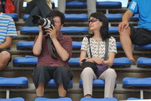 在隊(duì)列表演中,學(xué)員們齊步、正步、跑步整齊劃一,蹲下、起立、停止間轉(zhuǎn)法穩(wěn)健有力;在擒敵拳表演中,男子擒敵拳表演方陣踏地有力、氣勢(shì)如虹;女子擒敵拳方陣巾幗不讓須眉,英姿颯爽,震撼了所有在場(chǎng)觀眾,激發(fā)起熱烈掌聲。坐在觀禮臺(tái)上家長(zhǎng)們情不自禁地站立起來,取出專程帶來的相機(jī)、DV等,用照片和影像記錄著孩子們的風(fēng)采。