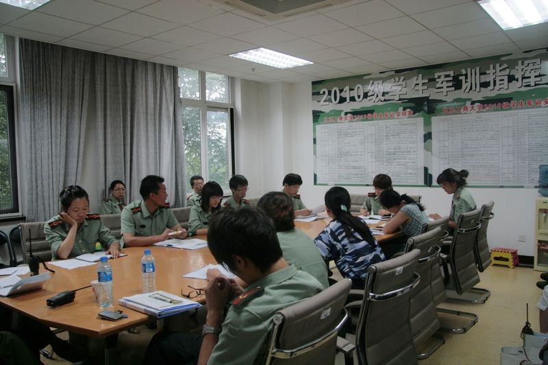 武裝部部長兼學生軍訓團政委呂素香于8:00召開軍訓會議,要求所有指導員和指揮部成員參加。會上各連隊對近期訓練情況進行了簡要匯報,各營隊普遍反映最近學生訓練進入疲勞期,傷病情況有所上升,呂素香對大家提出的問題進行了一一回復。