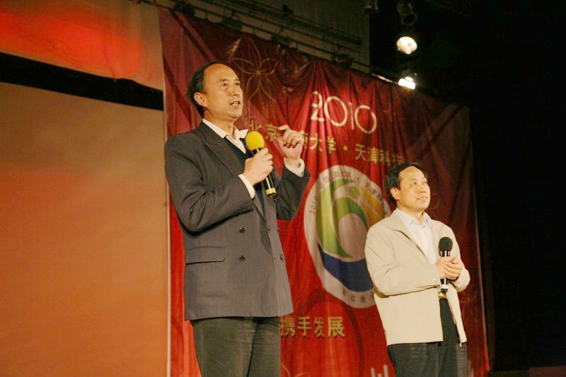 我校黨委副書記盧思鋒和天津科技大學黨委副書記潘秀山共同上臺發表講話。盧思鋒副書記表示此次兩校友好交流在這個大風降溫的天氣里讓我校感受到了春天般的溫暖,感謝天津科技大學為本次交流提供了各方面的支持。他希望兩校之間能夠繼續加強教學、科研等各方面的合作,希望兩校友誼長存。潘副書記引用我校同學表演的小品中的一個詞形容了他和同學們看完整場演出的感受:超幸福。他介紹了北京工商大學與天津科技大學的歷史淵源,并對我校藝術團的精彩演出表示感謝,他希望兩校友誼源遠流長,攜手發展,共創未來。