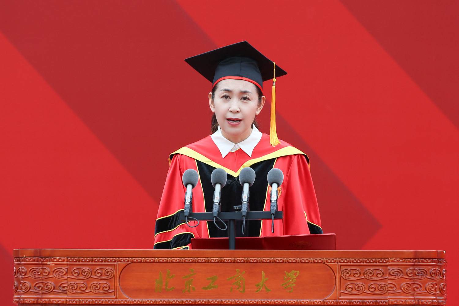 黃先開分享了自己的三點感悟:一是砥礪前行,有大志向。學子們要始終牢記今天的中國在世界大格局中的地位,不畏艱難,不懼挑戰,勇敢地去追尋屬于大家的星辰大海;二是縱橫天下,有大格局。要自覺擔當重任,讓青春在實現中華民族偉大復興的中國夢中綻放異彩,在祖國最需要的地方發光發熱,貢獻青春力量;三是要海納百川,有大胸懷。要以開放的心態和包容的精神,擁抱多元而美好的世界,創造人類文明的輝煌未來。他寄語全體畢業生要懷揣北工商人的責任擔當,在推進強國建設、民族復興偉業中展現青春作為、彰顯青春風采、貢獻青春力量,奮力書寫為中國式現代化挺膺擔當的青春篇章。