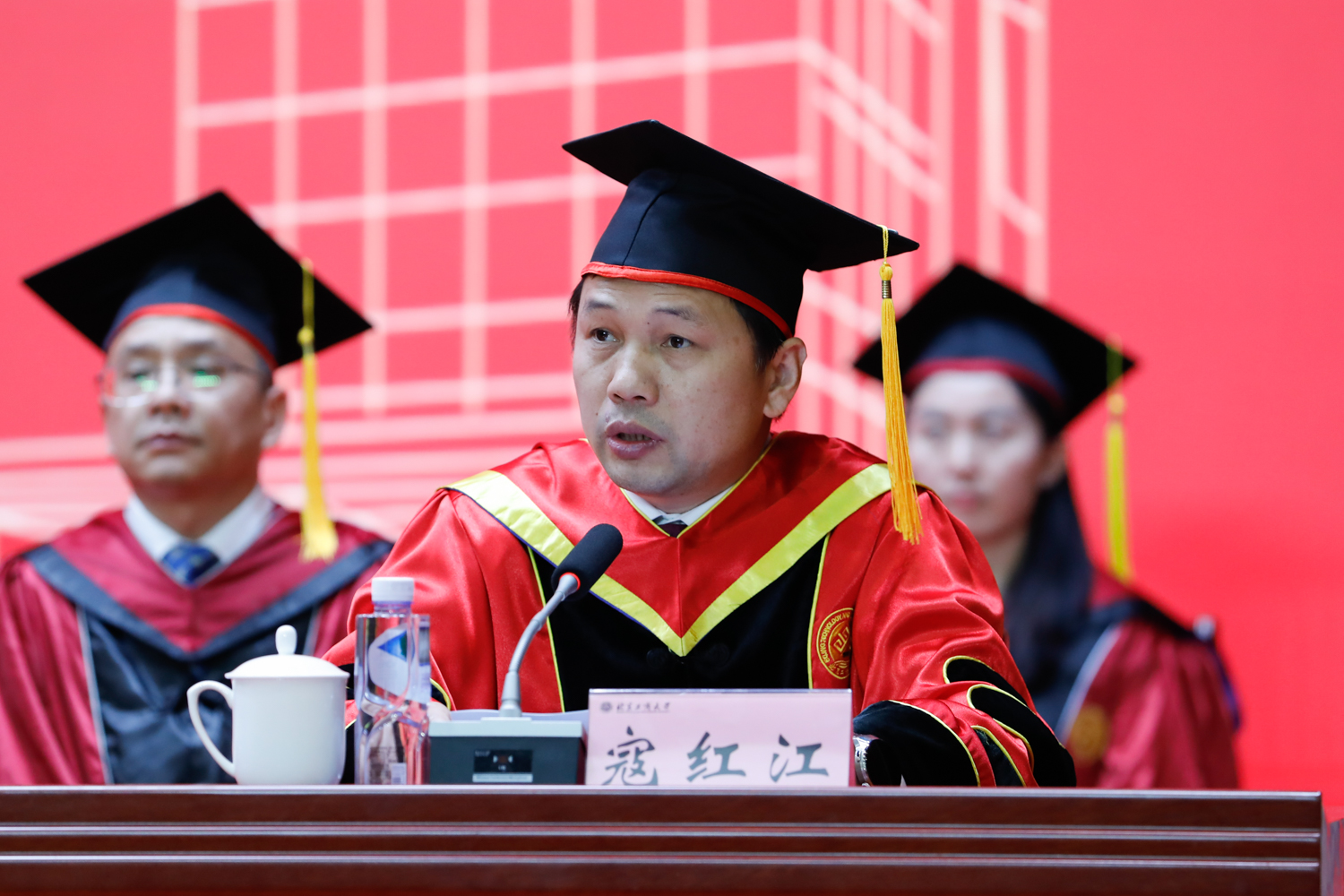 黨委書記黃先開,黨委副書記、校長郭建華為本碩博畢業生代表撥蘇正冠,希望畢業生都能堅定理想信念,擔當時代責任,接續奮斗開啟人生新篇章。全場掌聲雷動,為這榮耀一刻喝彩。