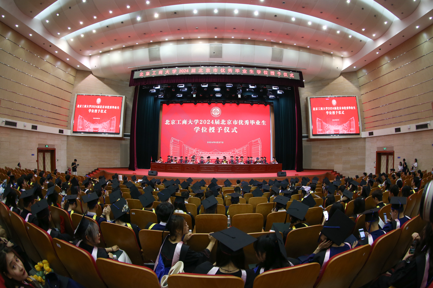 畢業典禮后,學校在良鄉主校區A報告廳舉行了2024屆北京市優秀畢業生學位授予儀式。校領導黃先開、郭建華、宋曉欣、鄭文紅、楊紅、徐丹丹、毛新述、寇紅江出席儀式,學位評定委員會成員、各學院負責人和全體市級優秀畢業生參加儀式。