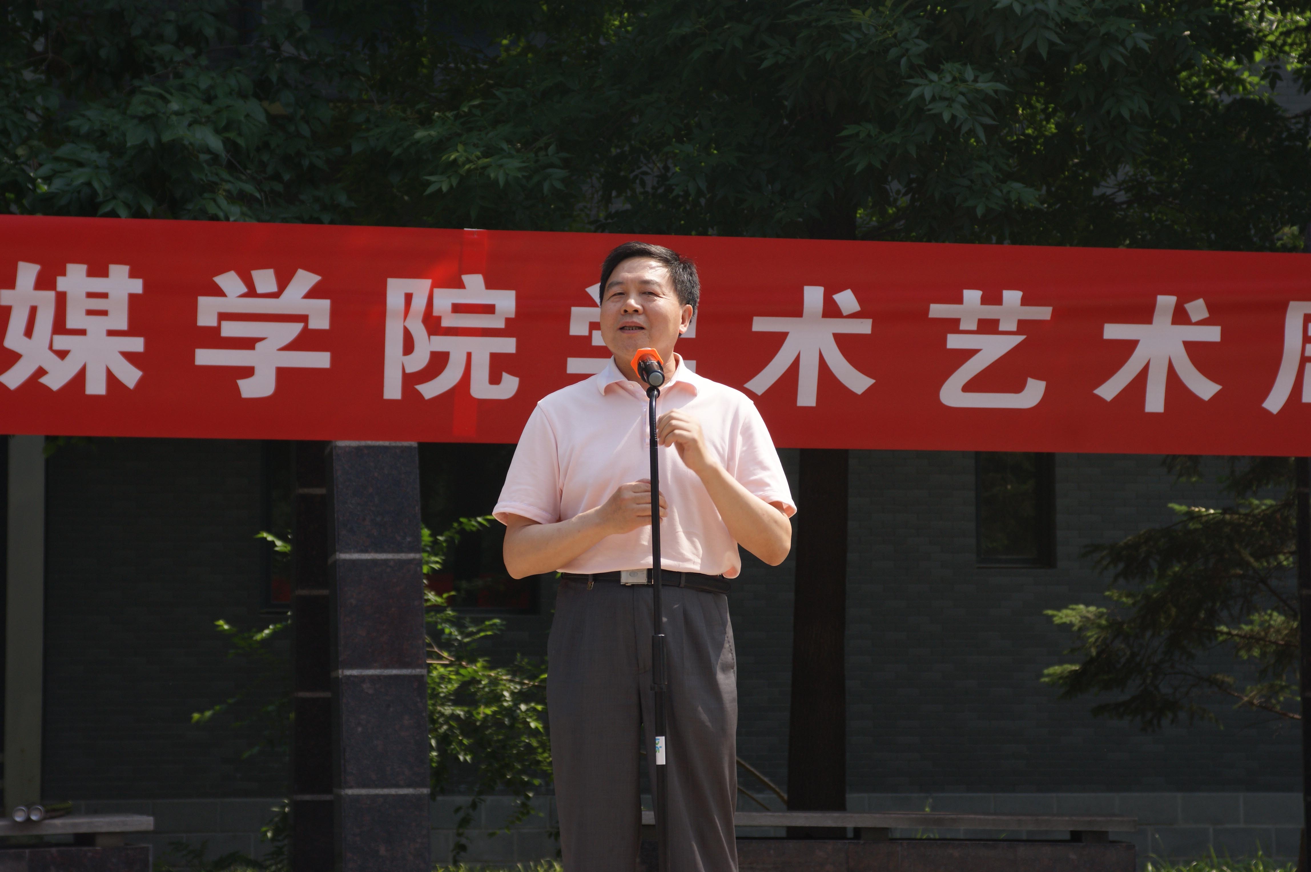 6月13日,喜迎建黨九十周年之際,經過各系師生緊張而充分的準備,藝術與傳媒學院2011年學術藝術周在藝術樓B座前小廣場上隆重開幕。出席本次開幕式的領導和嘉賓有:我校黨委張德玉副書記,校團委郭新愿副書記,北京工業設計促進中心主任兼北京工業設計協會秘書長宋慰祖,北京工程圖學會秘書長尚鳳武,北京郵電大學工業設計系主任侯文君教授,北京航空航天大學工業設計系馬金盛副教授,北京林業大學工業設計教研室主任程旭峰,北京信息科技大學工業設計系主任高炳學教授。 學院沈毅院長、黨總支書記秦巍老師、副院長羅子明教授和張翔教授,以及梁珣、孫進、李嶺、張帆老師等師生代表均參加了此次活動,黨總支副書記楊艷萍老師主持了開幕式。