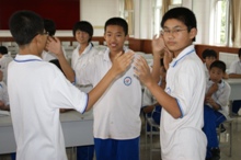 此外,上午的安全知識培訓也非常有趣。理學院實踐分團的“小老師”親自上臺演示。南召中學的同學被老師們吸引,便積極舉手也要做演示。大家其樂融融。