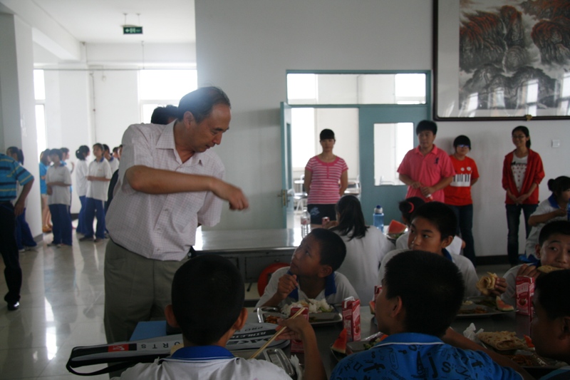 隨后,慰問團來到良鄉(xiāng)五中,觀看了材料與機械工程學(xué)院實踐分團的同學(xué)們與良鄉(xiāng)五中的學(xué)生們一起編排的演出。精彩的節(jié)目贏得了在座領(lǐng)導(dǎo)和師生的陣陣掌聲。在演出的最后,在座領(lǐng)導(dǎo)和全體師生起立合唱了紅歌《沒有共產(chǎn)黨就沒有新中國》。盧思鋒副書記對同學(xué)們的實踐成果加以肯定,并要求同學(xué)們要通過社會實踐活動達到“受教育,長才干,做貢獻”的目的。慰問團還參觀了實踐分團同學(xué)的食堂,對同學(xué)們的生活情況進行了了解和關(guān)懷。