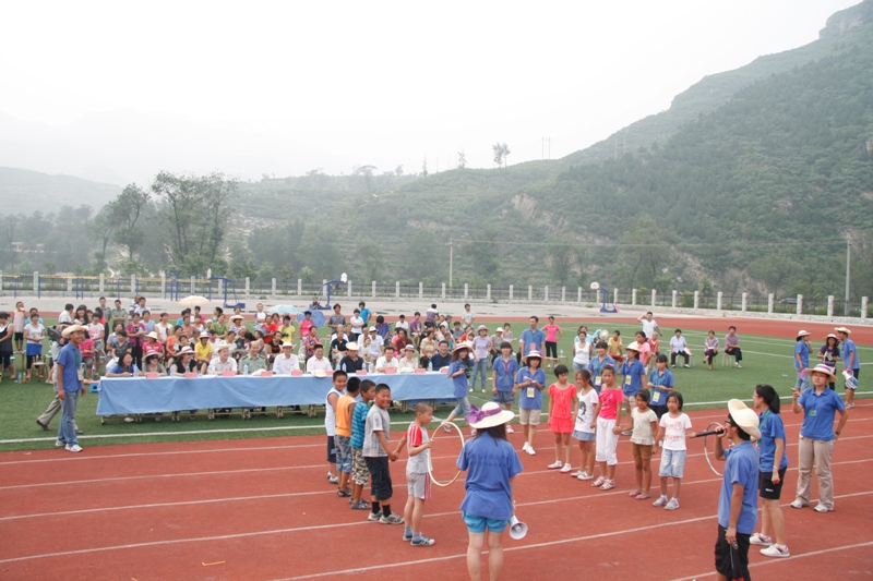 下午,慰問團又來到了地處山區(qū)的佛子莊中心校,在當(dāng)?shù)厥艿搅朔鹱忧f鄉(xiāng)黨委書記和黨委副書記的熱情接待。同時,慰問團還與在當(dāng)?shù)伛v扎的62319部隊隊長進行了親切交談;對計算機與信息工程學(xué)院實踐分團的同學(xué)們進行了親切的慰問,肯定了他們的實踐成果。烈日下,盧思鋒副書記帶領(lǐng)慰問團觀看了在佛子莊中心校操場上舉行的演出。除了我校實踐分團為當(dāng)?shù)睾⒆觽兙幣诺墓?jié)目外,當(dāng)?shù)卮迕窈婉v扎部隊也參與了表演。親子游戲、套圈比賽、乒乓球接力等有趣的游戲節(jié)目,更是贏得了領(lǐng)導(dǎo)、師生和村民們的陣陣歡笑。盧思鋒副書記對實踐分團的實踐活動進行了了解,強調(diào)要做好總結(jié),并叮囑同學(xué)們要注意人身安全和身體健康。
