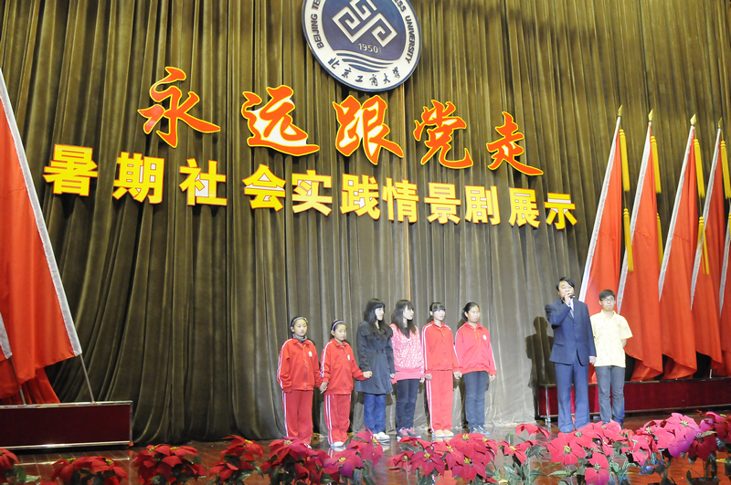 北京工商大學2011年暑期社會實踐以紀念中國共產(chǎn)黨成立90周年為契機,以“永遠跟黨走”為主題,采取集中與分散相結合、分層次、項目化的組織管理模式。實踐內(nèi)容包括:(一)延續(xù)我校品牌實踐項目“十鄉(xiāng)百村千人行,深入基層看民生”。九個學院共派出12支實踐隊伍,500余名師生奔赴北京市房山區(qū)南召、佛子莊、石窩、長溝等12個鄉(xiāng)鎮(zhèn)。各學院依托自身專業(yè)特色,結合各實踐基地具體情況,開展了以英語和計算機教學、素質(zhì)拓展訓練、文體活動為主要內(nèi)容的夏令營支教,以知識競賽、紅歌合唱、紅色影片欣賞為主要形式的黨史宣傳,以走訪農(nóng)戶、對話基層干部、采集基礎數(shù)據(jù)為主要途徑的民生調(diào)研,并開展了法律知識、食品安全知識普及。實踐團還對當?shù)貧v史檔案館、優(yōu)秀農(nóng)村企業(yè)進行了參觀學習,并走進敬老院、街道社區(qū)開展志愿服務等。“十鄉(xiāng)百村千人行”暑期社會實踐自2005年已連續(xù)開展7年,先后約3500人參與其中。該社會實踐活動已連續(xù)5年獲得全國及省部級獎勵,今年亦被評為北京市重點團隊。(二)深入基層社區(qū),追尋城市發(fā)展。組織大學生深入社區(qū),走訪家庭。通過與豐臺、石景山、海淀等地區(qū)部分社區(qū)進行對接,引導、鼓勵廣大青年學生結合自身特點,充分發(fā)揮高校智力、人力資源優(yōu)勢,切實服務“人文北京科技北京 綠色北京”建設。(三)訪京城高新企業(yè),探人才發(fā)展之路。各學院分別結合本專業(yè)特點,帶領學生到企業(yè)進行調(diào)研和實習,走訪了東軟集團、北京順鑫鵬程食品廠等數(shù)十家企業(yè),將所學專業(yè)知識得到應用和轉化。(四)培養(yǎng)科技創(chuàng)新能力,專業(yè)實踐出真知。鼓勵學生根據(jù)專業(yè)特點組成學術科技實踐隊伍,在實踐中發(fā)現(xiàn)真知、運用真知,在解決實際問題中增長才干,不斷提高實踐能力、創(chuàng)新創(chuàng)業(yè)能力。(五)尋找紅色記憶,擔當歷史使命。北京工商大學赴內(nèi)蒙古興安盟開展京外實踐活動,該實踐團隊獲評全國大學生“三下鄉(xiāng)”社會實踐活動重點項目。組織學生重走紅色革命路線,探訪革命傳統(tǒng)教育基地;走訪當?shù)貟炻毟刹亢臀鞑坑媱澲н叴髮W生等優(yōu)秀青年群體,用身邊的青年榜樣教育學生,培養(yǎng)高度的社會責任感和使命感。(六)思政教學專題調(diào)研。由馬克思主義學院負責指導社會實踐專題調(diào)研和選派專業(yè)教師帶隊參加實踐,參與人數(shù)700余人,前往大興區(qū)老宋瓜園生態(tài)農(nóng)業(yè)基地、北宅村等地開展專題調(diào)研。此外,還有1000余名同學參與了自由組隊的分散實踐項目。