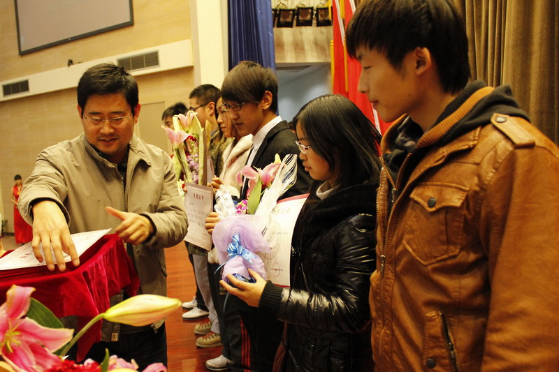 大會伊始,校健美操大賽一等獎作品“經(jīng)舞門”展現(xiàn)了經(jīng)院英才的風(fēng)采。學(xué)生工作視頻集錦使與會師生共同重溫了犇騰經(jīng)院過去一年中的難忘瞬間。馬韜光致開幕詞,總結(jié)了經(jīng)濟(jì)學(xué)院在黨建工作、學(xué)風(fēng)建設(shè)、班級宿舍建設(shè)等各項(xiàng)學(xué)生工作和活動中的所取得的優(yōu)異成績,肯定了教授論壇、金融投資大賽、博學(xué)精英知識挑戰(zhàn)賽、黨員宿舍等品牌活動的舉辦成效。與會領(lǐng)導(dǎo)和老師分別宣讀了2010-2011學(xué)年市級、校級先進(jìn)集體和優(yōu)秀個人,突出貢獻(xiàn)團(tuán)隊及個人,各級獎學(xué)金的獲得者名單并致頒獎詞,共頒發(fā)先進(jìn)個人630人,先進(jìn)集體20個。國家獎學(xué)金獲得者賈雨亭同學(xué)發(fā)表獲獎感言。
