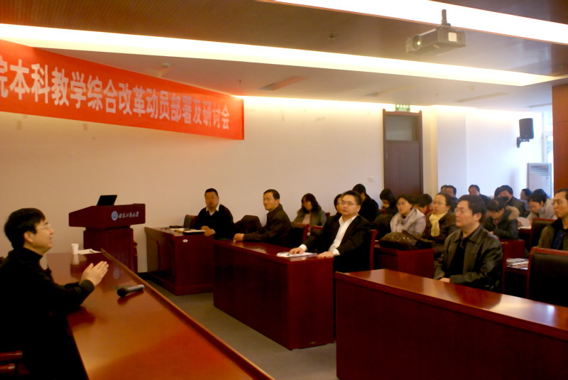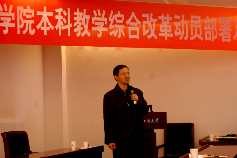 張曉堂處長談了改革的緊迫性和必要性。他談到了改革會遇到的阻力和難度,希望老師們不要有畏難情緒,要勇于改革。張?zhí)庨L提出改革涉及到教育理念、培養(yǎng)方案、課程體系、教學方法、教學管理等方方方面,學校逐漸將管理的中心下移,學院要認真研討,明年3月1日之前要拿出一個具體可行的改革方案。
