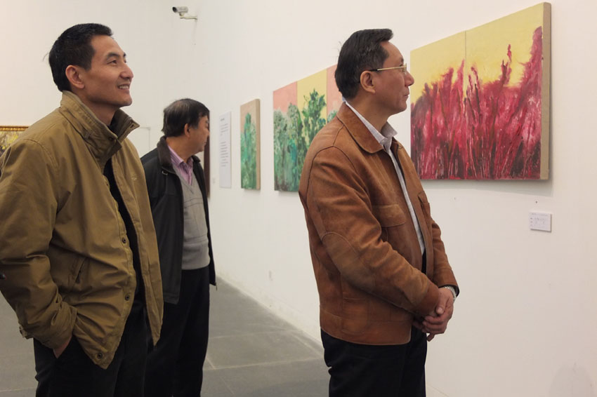 12月27日,謝志華副校長應藝術與傳媒學院邀請參觀在清華大學美術學院展覽館舉辦的“一路同行——15人造型藝術作品展”。在藝術與傳媒學院副院長羅子明的陪同下,他認真參觀了各位老師的作品,并對老師們的藝術作品給予了充分的肯定。