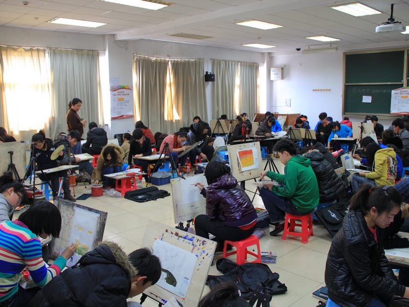 校考北京考點的考試火熱進行中。考生們正用他們手中的畫筆描繪心中的夢想和美好的明天。