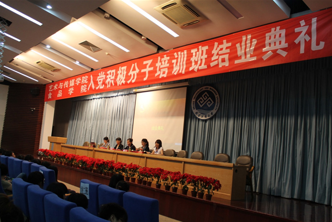 5月11日,在雄壯的國歌聲中,藝術與傳媒學院、食品學院入黨積極分子培訓班結業典禮在B報告廳舉行。黨校辦公室主任李躍萍、藝術與傳媒學院黨總支書記秦巍、食品學院黨總支書記何猛等出席了結業典禮。