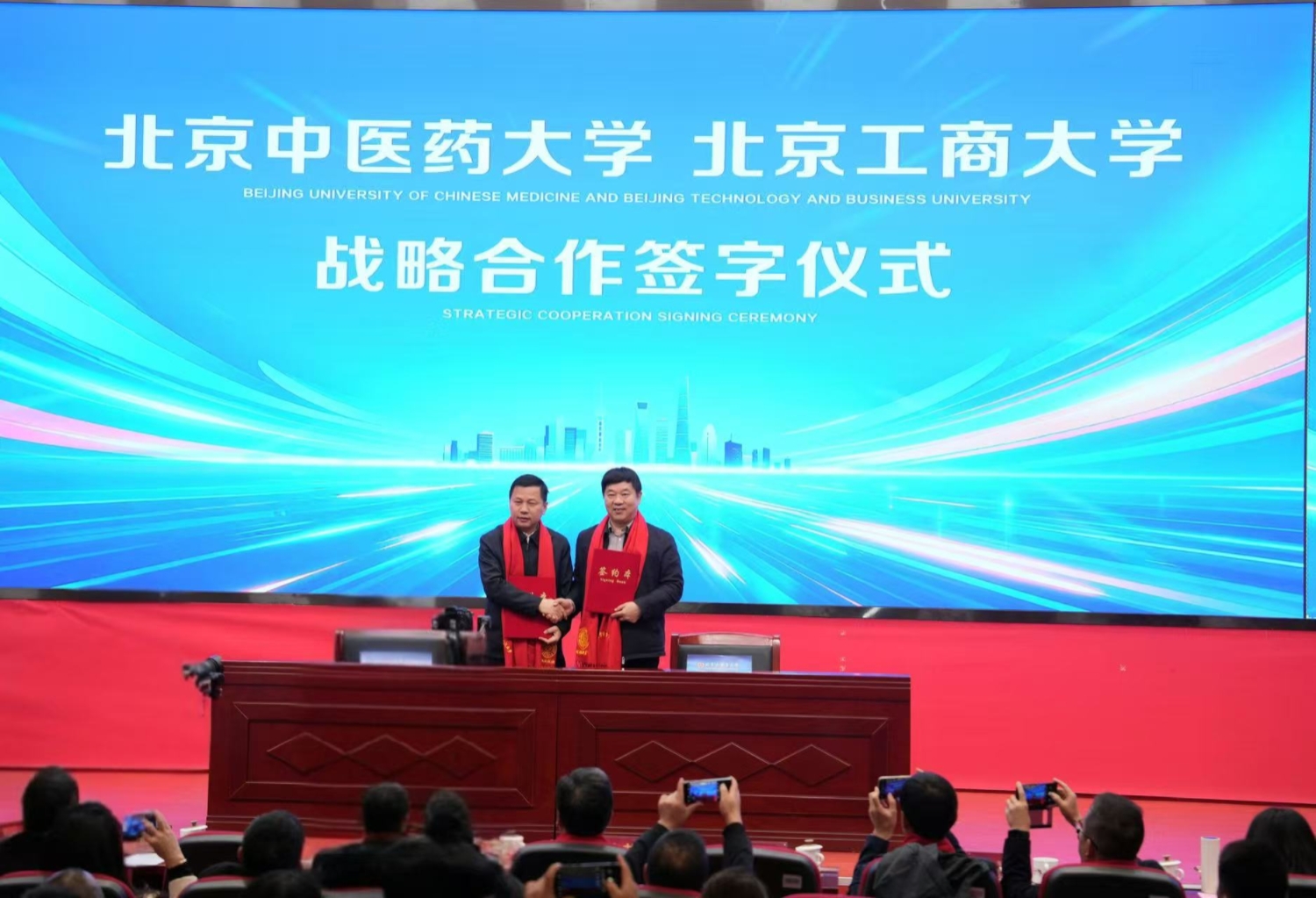 我校黨委常委、副校長(zhǎng)寇紅江在致辭中對(duì)各位專家學(xué)者的參會(huì)表示誠(chéng)摯歡迎,指出“藥食同源”已上升為國(guó)家戰(zhàn)略性新興產(chǎn)業(yè),本次大會(huì)既是響應(yīng)中央號(hào)召、傳承岐黃薪火的具體行動(dòng),更是推動(dòng)中醫(yī)藥在新時(shí)代主動(dòng)融入、積極服務(wù)健康中國(guó)戰(zhàn)略的生動(dòng)實(shí)踐,希望學(xué)校與北京中醫(yī)藥大學(xué)強(qiáng)強(qiáng)合作,發(fā)揮中藥/食品等龍頭學(xué)科作用,交叉創(chuàng)新,助力藥食同源產(chǎn)業(yè)更好更快發(fā)展。會(huì)上我校與北京中醫(yī)藥大學(xué)簽署戰(zhàn)略合作協(xié)議,雙方將在聯(lián)合科研攻關(guān)、人才培養(yǎng)、平臺(tái)共建等方面開展深入合作,不斷為服務(wù)北京及國(guó)家戰(zhàn)略需求貢獻(xiàn)智慧與力量。