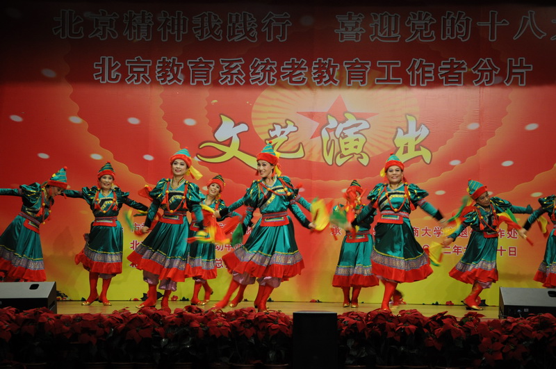 9月20日上午,“北京精神我踐行、喜迎黨的十八大” 教育系統老教育工作者分片文藝演出在阜成路東區禮堂舉行。文藝演出由北京市委教育工委市教委離退休干部處、北京市老教育工作者總會、北京教育老干部活動中心主辦。