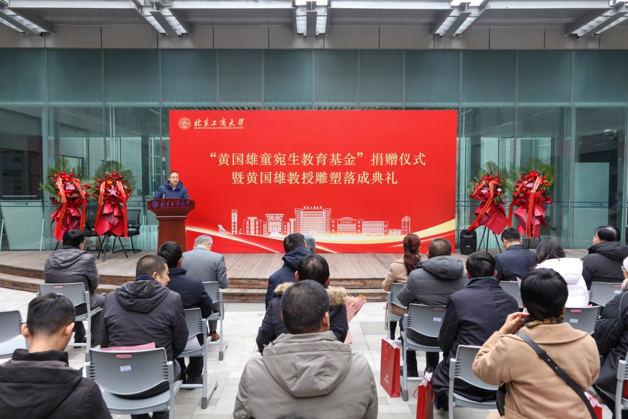 1月19日上午,“黃國雄童宛生教育基金”捐贈簽約儀式暨黃國雄教授雕塑落成典禮在良鄉校區經濟學院舉行。我校黨委常委、副校長、教育基金會理事長徐丹丹,原副校長謝志華,經濟學院榮休教師童宛生,86經濟法校友、北京市政協委員、北京美臣保理投資管理公司董事長黃軼及校友代表、黃國雄童宛生教授學生代表等出席儀式。儀式由經濟學院黨委書記呂良主持。