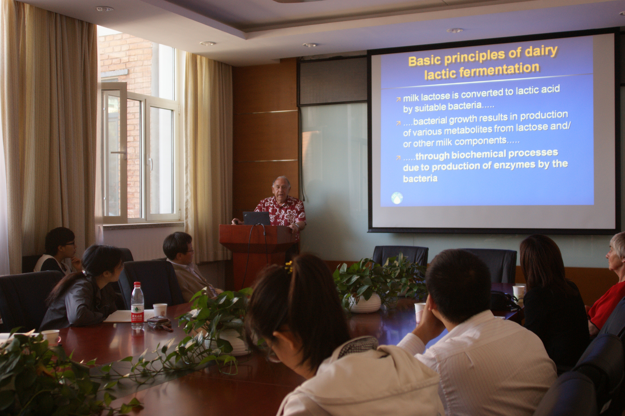 報告介紹了乳品發酵技術特點及應用、國際發酵乳制品的發展趨勢等,同時以奶酪為例,介紹了固態介質發酵對食品風味、質地、生物活性的改善,以及對人體健康的積極影響。報告創新性地提出了利用生物發酵劑中的酶活性開發新產品,使與會師生對乳品發酵技術及應用有了更深的認識。報告結束后,Jelen教授耐心解答了關于乳酸菌發酵產乳糖酶的應用技術是否具有可行性等問題,為乳酸菌發酵技術的發展提供了新思路。報告在熱烈的掌聲中結束。