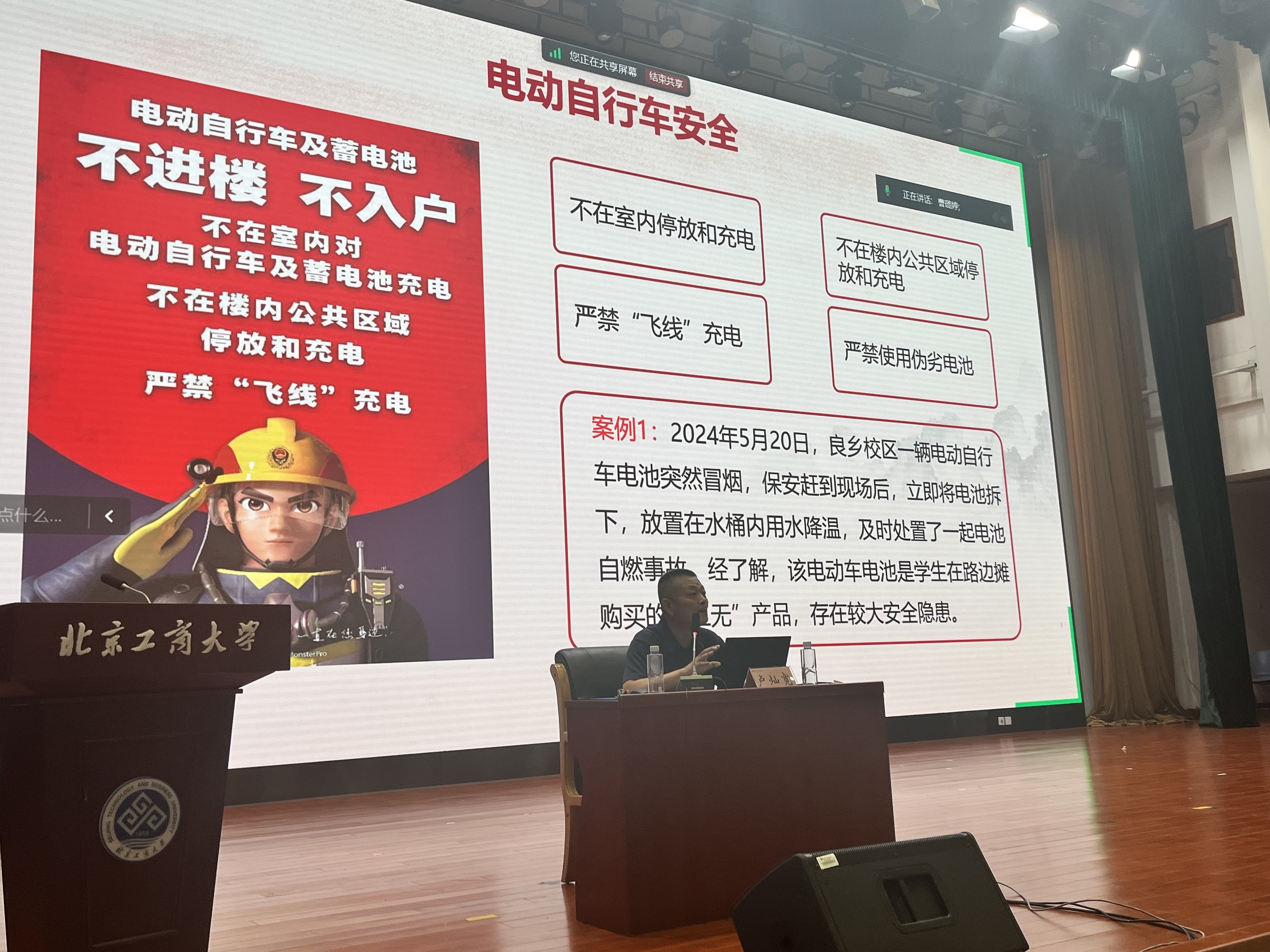 為使新生掌握安全知識,提高安全意識,筑牢校園安全防線,學校保衛處處長盧燦寬、北京市公安局房山分局警長劉春、海淀交通安全委員會辦公室主任李希寶分別就消防安全、反電信詐騙、交通安全三個主題,為新生開展安全教育專題講座。盧燦寬為新生梳理了常見校園火災誘因、季節火災特點、宿舍常見消防隱患等重點知識,傳授防火救災技能要領。劉春介紹了刷單返利、冒充電商物流客服、虛假購物、游戲賬號買賣等騙術過程,指導新生安裝“全民反詐”APP,利用信息化手段提高新生的反詐能力,維護新生個人財產安全。李希寶通過一個個真實示例,分析了校內外常見的交通安全隱患,提醒新生牢記教訓,遠離交通事故。