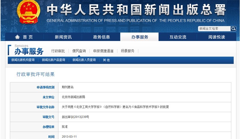 近日,國家新聞出版總署正式作出關于同意《北京工商大學學報》(自然科學版)更名為《食品科學技術學報》的批復。至此,我校在打造高標準食品科學專業精品期刊的道路上邁出了非常重要的一步。