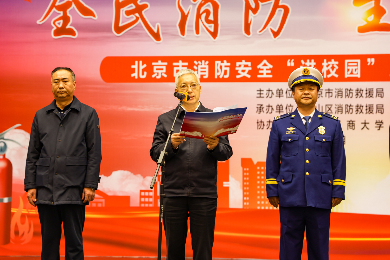 李中奇代表學(xué)校介紹了校園消防安全工作開展情況;與會(huì)領(lǐng)導(dǎo)分別為北京工商大學(xué)、北京中醫(yī)藥大學(xué)、北京理工大學(xué)、首都師范大學(xué)和中國(guó)社會(huì)科學(xué)院大學(xué)等五所大學(xué)消防志愿者服務(wù)分隊(duì)授旗,激勵(lì)各大學(xué)消防志愿服務(wù)分隊(duì)積極開展工作;北京工商大學(xué)消防志愿者代表郝樂之同學(xué)分享了自己的消防志愿服務(wù)經(jīng)歷和感想,展現(xiàn)了同學(xué)們積極參與消防志愿服務(wù)的熱情。