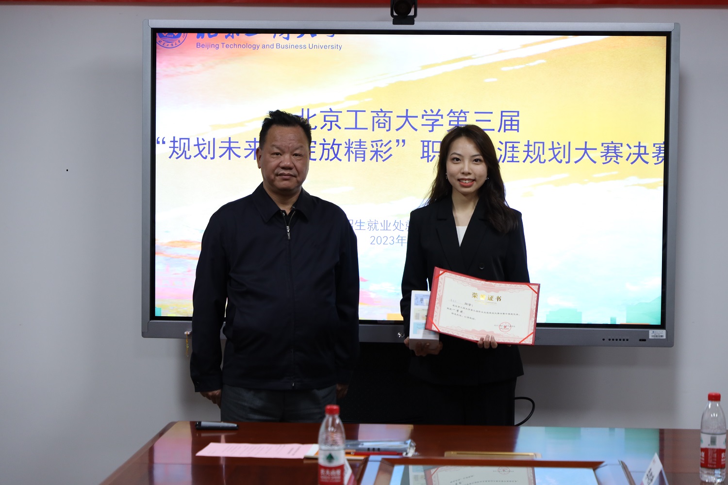 鄭文紅致閉幕詞時對同學們提出三點建議:一是同學們在學習和生活中需要保持謙和低調(diào);二是要努力學習、不斷提升個人素質(zhì);三是要學會與人相處,學會適應團隊生活并取得爭取獲得更大的成績。今年高校畢業(yè)生達1158萬,北京地區(qū)高校畢業(yè)生28.5萬,學校和畢業(yè)生共同面臨著空前的就業(yè)壓力,他希望同學們通過大賽,及早著手準備,充分進行自我認知與評估,以陽光的心態(tài)面對生活和各種困難,通過學習他人的長處和規(guī)劃方式,應對社會和環(huán)境的變化,學以致用,積極發(fā)現(xiàn)新模式、新賽道,把學校所學、個人發(fā)展和社會需求緊密結(jié)合,做有想法、有責任感、有擔當?shù)臅r代新人,不斷通過“學習—規(guī)劃—實踐—探索—反思—修正”這種方式投身學習與實踐,不斷提升自己的就業(yè)競爭力。