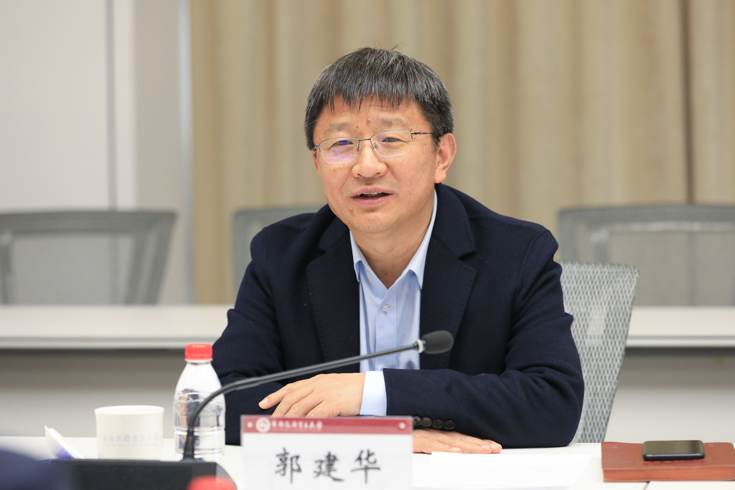 郭建華對首都經濟貿易大學的熱情接待表示感謝,并表示首都經濟貿易大學文化底蘊深厚,秉承“崇德尚能,經世濟民”的校訓精神,在“駱駝精神”的指引下,為國家和北京市培養了一批活躍在政府部門、教育界、學術界和金融、財稅、會計等行業的優秀人才,此次調研收益良多。他介紹了學?;厩闆r,表示學校致力于建設特色鮮明的高水平研究型大學,全校一盤棋統籌推進“雙一流”學科創建工作,堅持以轉型融合促提升,著力推進數字化轉型,積極探索實施商科與工科主動對接、深度融合、一體發展的方法和路徑,不斷推動學校內涵式高質量發展。希望兩校加強溝通協作、互通有無、相互扶持,通過此次交流尋求相互提升的契合點,加強合作,共同進步,為首都經濟社會發展貢獻市屬高校力量。