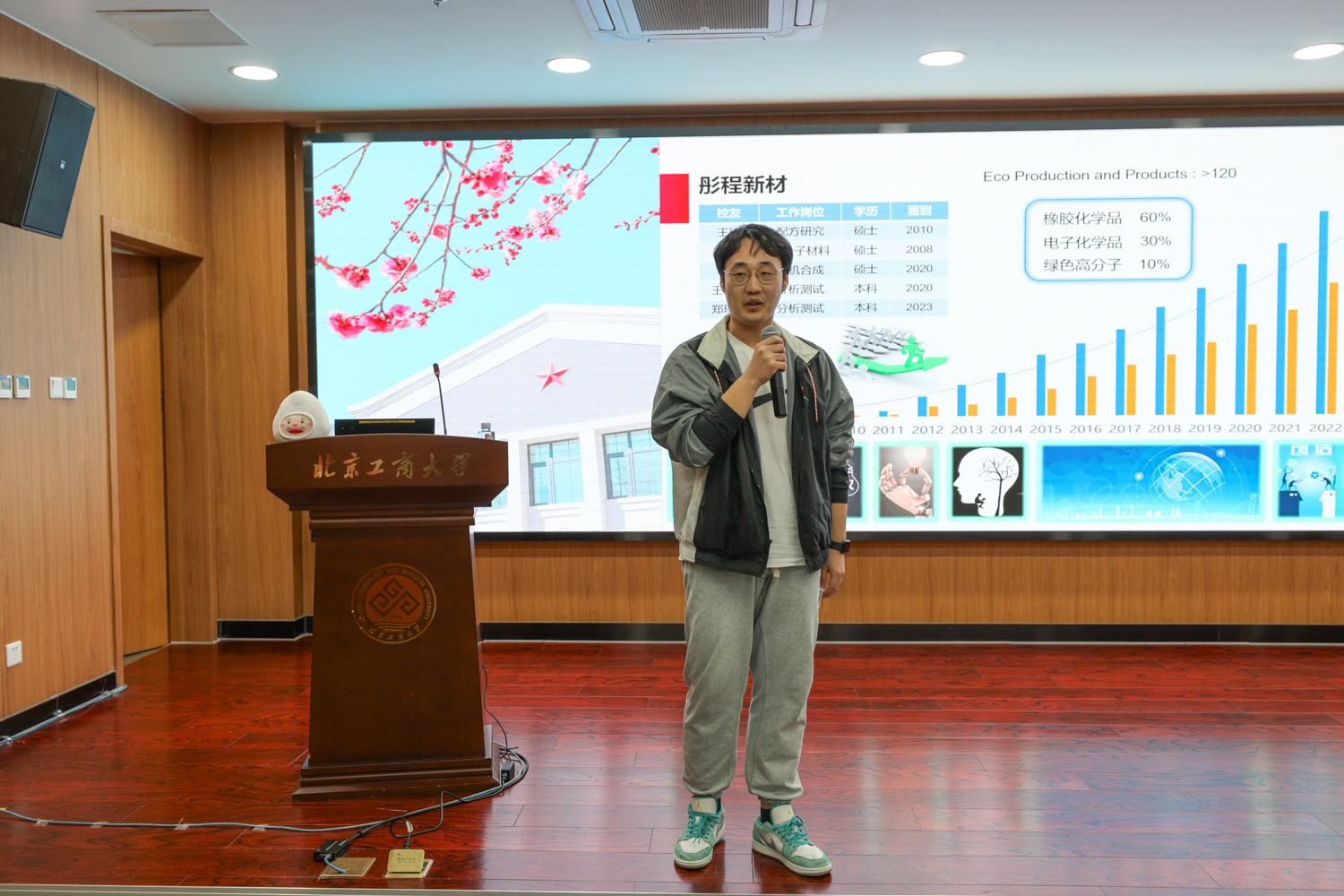 10月8日,北京工商大學校友見面會暨彤程2025屆管培生校招宣講會在阜成路校區舉辦。學校黨委副書記、校長郭建華,黨委常委、副校長徐丹丹,彤程新材料集團股份有限公司董事長、基金會創始人張寧(93級校友),上海彤程公益基金會秘書長蔡琲,集團副總裁趙燕超出席活動。宣講活動由彤程旗下北京科華微電子材料有限公司董事長董棟主持。