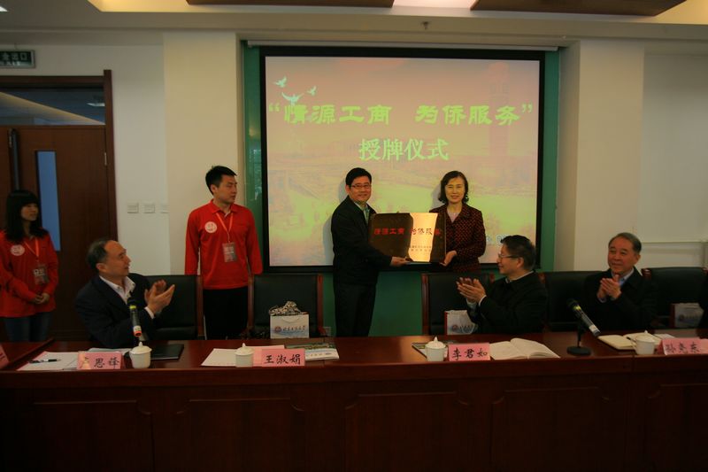 報告會結束后,舉行了“情源工商、為僑服務”活動授牌儀式和座談會。“情緣工商、為僑服務”志愿服務項目于2011年1月啟動,至今已兩年有余。活動的開展始終得到了中直機關僑聯李君如主席、中直機關工委群工部領導和校黨委盧思鋒副書記的關心指導。經濟學院黨總支副書記馬韜光代表學院接受了中直機關僑聯常務副主席王淑娟贈送的“情源工商、為僑服務”活動牌匾。