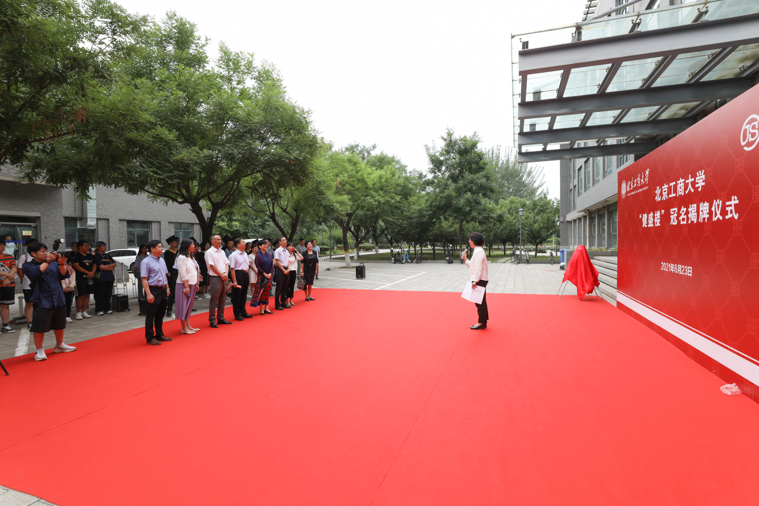 6月23日下午,北京工商大學“健盛樓”冠名揭牌儀式在良鄉主校區隆重舉行,黨委副書記、校長孫寶國院士,浙江健盛集團股份有限公司董事長張茂義、集團副總裁郭向紅出席儀式。儀式由我校副校長、教育基金會理事長張耘主持。