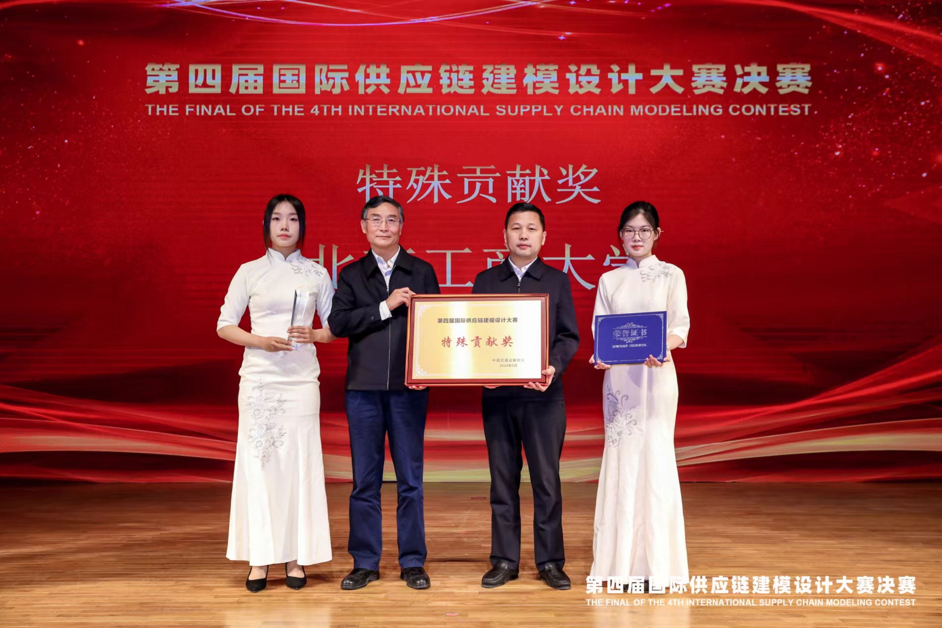 在頒獎儀式后,李剛代表主辦單位進行總結發言,對大賽的成功舉辦表示祝賀,對所有參與大賽的選手、評審專家和工作人員表示衷心的感謝,并為北京工商大學頒發了“特殊貢獻獎”,以表彰學校為承辦本次大賽做出的貢獻。至此,第四屆國際供應鏈建模設計大賽在北京工商大學圓滿落幕。