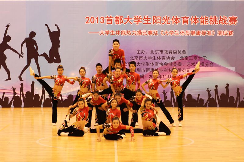 本次比賽的開幕式獨(dú)具特色,700余名運(yùn)動(dòng)員身著艷麗的隊(duì)服、伴隨著歡快的音樂跳著熱力操舞動(dòng)著上場(chǎng)。比賽設(shè)有體能熱力操和體質(zhì)測(cè)試健康標(biāo)準(zhǔn)賽兩個(gè)項(xiàng)目。在王曉霞、孫彥瑩老師的指導(dǎo)下,我校的兩支參賽隊(duì)伍參加了所有比賽項(xiàng)目,“北京工商大學(xué)一隊(duì)”榮獲甲組團(tuán)體賽一等獎(jiǎng),“北京工商大學(xué)二隊(duì)”榮獲甲組團(tuán)體賽二等獎(jiǎng),學(xué)校獲得精神文明獎(jiǎng),韓哲、林琦、苗強(qiáng)、谷雅鑫同學(xué)獲評(píng)優(yōu)秀運(yùn)動(dòng)員。