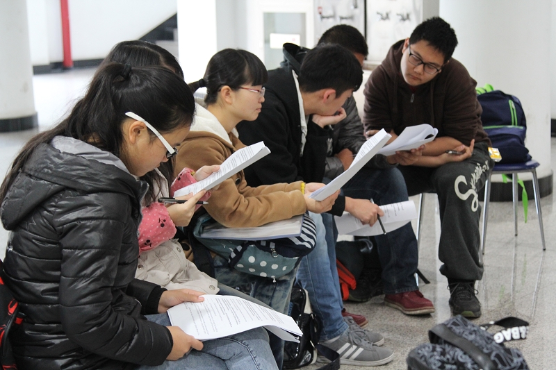 提高英語聽說能力,結(jié)交志同道合的朋友,是大家來英語角的一個重要原因。藝術(shù)與傳媒學(xué)院產(chǎn)品設(shè)計專業(yè)的袁小鳳同學(xué)還承擔(dān)了“小翻譯”的工作,她表示,“這個活動給我提供了很好的機會,讓我可以與外教面對面溝通,提高自己的英語聽說能力。”來自計算機與信息工程學(xué)院的于田昊同學(xué)告訴記者:“Mervyn不僅帶我們一起練習(xí)口語、排練話劇,而且告訴我們心中要有夢想,為了自己的夢想不斷努力。”商學(xué)院的毛同學(xué)已經(jīng)堅持來這里學(xué)習(xí)四周了,英語角的活動不僅幫助她了解到了很多外國文化,而且增多了與外教交流的機會,受益匪淺。在享受這個過程的同時,她也提出了自己的建議,“我希望英語角不僅是在排演話劇,還可以增加更多的英語對話,對有出國打算的學(xué)生們提供日常會話的鍛煉環(huán)境。”