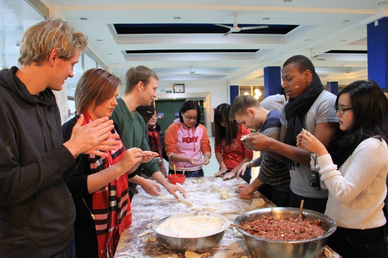 12月10日,國際處組織留學(xué)生與國際交流與合作協(xié)會的志愿者在東區(qū)食堂開展了“中國傳統(tǒng)文化之冬至包餃子活動”。中外學(xué)生早早地來到食堂,一看到擺放整齊的搟面杖、面團、餃子餡就迫不及待地行動起來。對于從未包過餃子的外國留學(xué)生來說,包餃子是一項比較困難的技術(shù)活。在志愿者的耐心幫助下,每一個留學(xué)生都學(xué)會了搟皮,包出了自己滿意的餃子。經(jīng)過將近1個半小時的努力,大家一同品嘗了親手包的熱氣騰騰的餃子。留學(xué)生們紛紛表示,這是他們吃過最好吃的餃子。