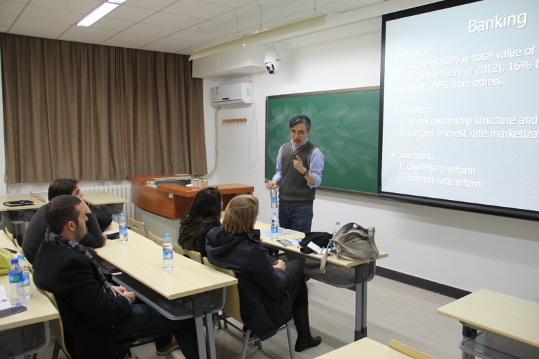 國際交流與合作處處長何明珂、副處長劉影與塞瑟•法拉吉顧問就兩校的學生交換和教師交流項目的具體細節進行商談。何明珂處長和經濟學院宛璐老師為代表團的10名巴西學生介紹了我國物流發展的現狀和前景、中國對外貿易和金融改革等方面的情況,并進行交流。