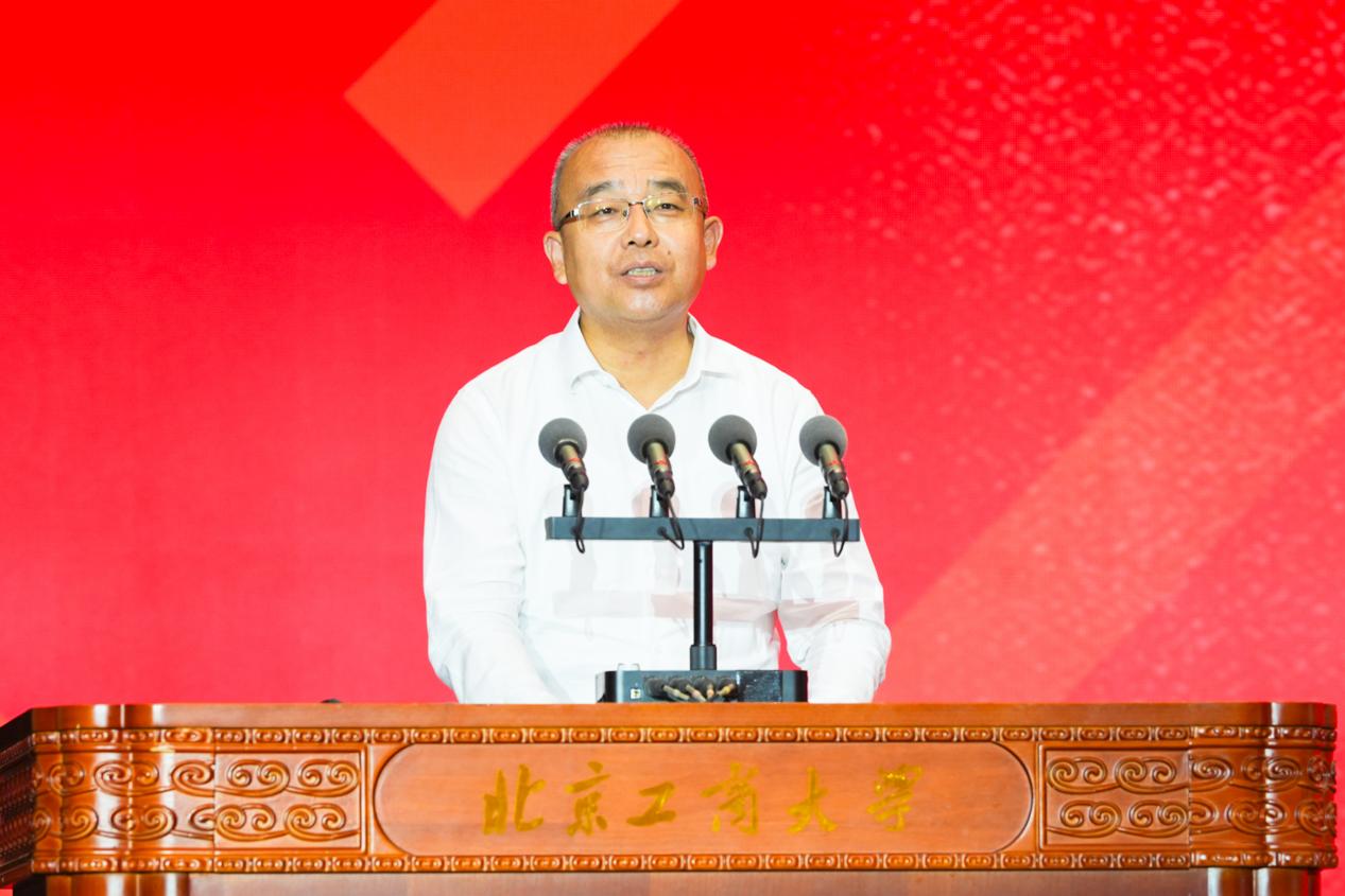 校黨委副書記、校長郭建華作學校創新發展成果及創建“雙一流”情況報告。他代表學校全體師生員工,向關心支持學校發展的各級領導、各界朋友、廣大校友,致以熱烈歡迎和衷心感謝。他回顧了學校從建校到三校合一、再到 “工商一體” 新征程的發展歷程,匯報了學校在學科建設、人才培養、科學研究、師資隊伍建設等方面取得的豐碩成果。他強調,建設世界一流大學和一流學科既是國家教育強國戰略的迫切要求,更是學校自身發展的內在需要。他號召全校師生以此次大會為新起點:以“工商一體”之智,爭當教育強國建設的先鋒隊;以“奮進一流”之志,爭當科技自立自強的突擊隊;以“經世濟民”之責,爭當區域協調發展的主力軍,在中國式現代化和新時代首都發展的壯闊征程上展現北工商擔當。