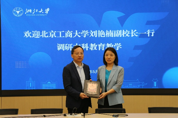 劉艷楠對浙江大學的熱情接待表示感謝,并聚焦“工商一體化”發展理念,介紹了學校的歷史沿革和發展藍圖。她表示,浙江大學在教育教學改革、拔尖創新人才培養、助力學生多元發展等方面做了大量的努力和探索,培養出以梁文鋒為代表的一大批新時代拔尖創新人才,這些思路舉措和成功經驗為北京工商大學提高人才培養質量提供了有益的借鑒與啟示。