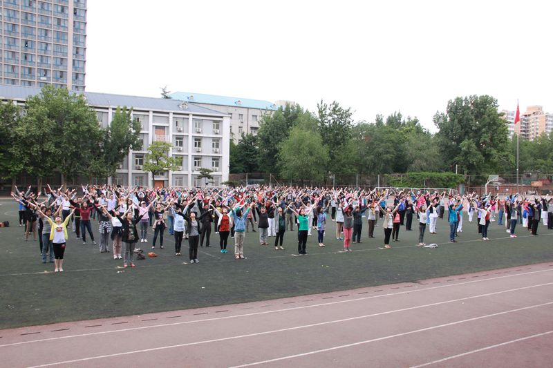 5月14日,教職工“千人廣播操”彩排在阜成路校區(qū)舉行。來自14個(gè)分工會(huì)的近千名教職工參加了彩排。黨委副書記、工會(huì)主席張德玉親臨現(xiàn)場(chǎng)指導(dǎo)。