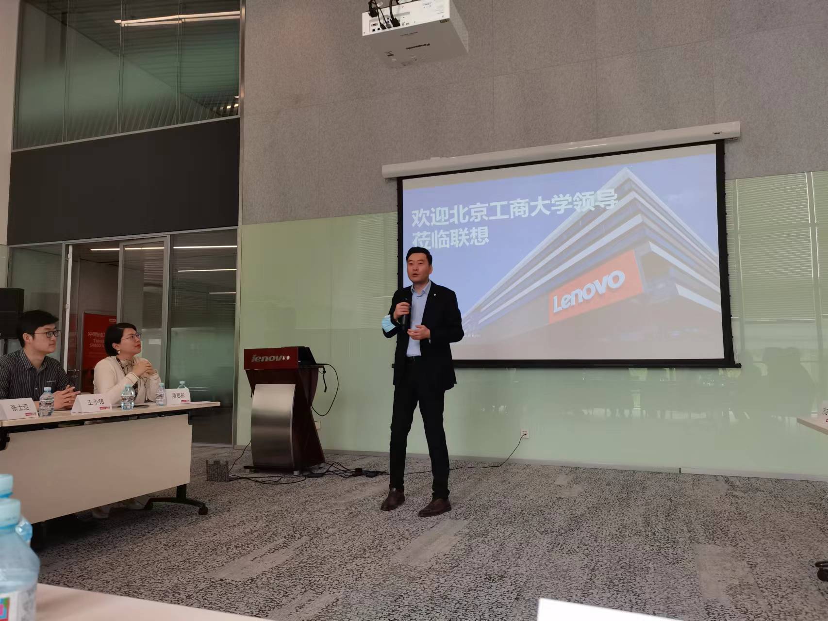 王偉副書記對聯想集團的熱情接待表示感謝,并詳細地介紹了北京工商大學的發展歷史、專業設置、師資隊伍、人才培養、信息化建設等方面的情況。他結合當前行業和社會發展趨勢談到,社會智能化對計算機相關專業和企業發展提出了更高要求,希望推動校企深度合作,并就校企合作過程中的專家互聘、學生專業實習實踐等方面提出了建議。王偉副書記表示,希望能夠促成與聯想集團的合作,創新人才培養思路,提升人才培養質量,推動校外學生實習基地建設,促進學生實現更好的發展。