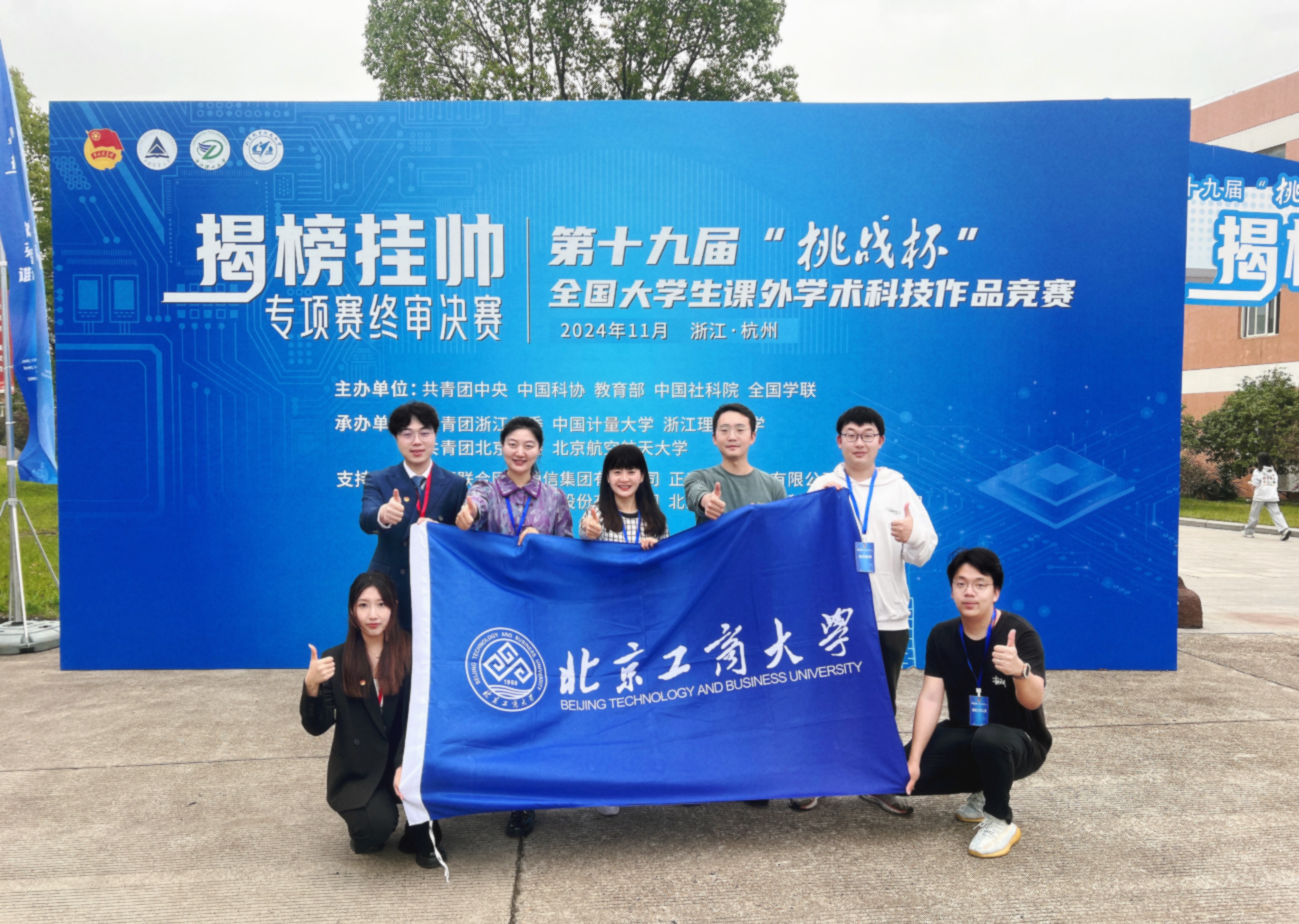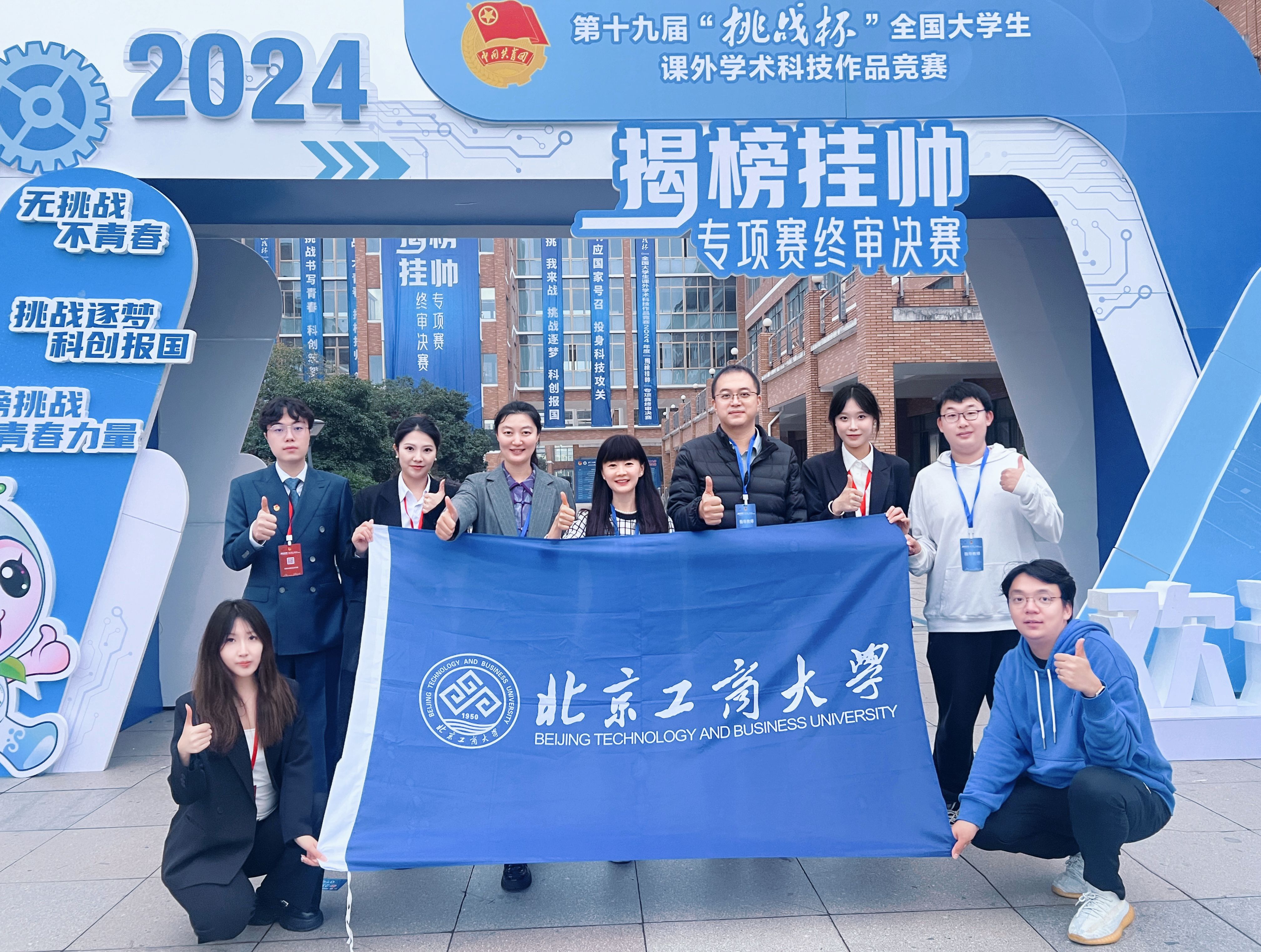 青春筑夢,科創報國。第十九屆“挑戰杯”全國大學生課外學術科技作品競賽2024年度“揭榜掛帥”專項賽終審決賽于11月8日至10日在北京航空航天大學、11月15日至17日在中國計量大學和浙江理工大學舉行。北京工商大學斬獲全國特等獎、擂主(特等獎中得分第一名),再次刷新了學校在“挑戰杯”競賽中的歷史記錄,取得歷史性新突破。