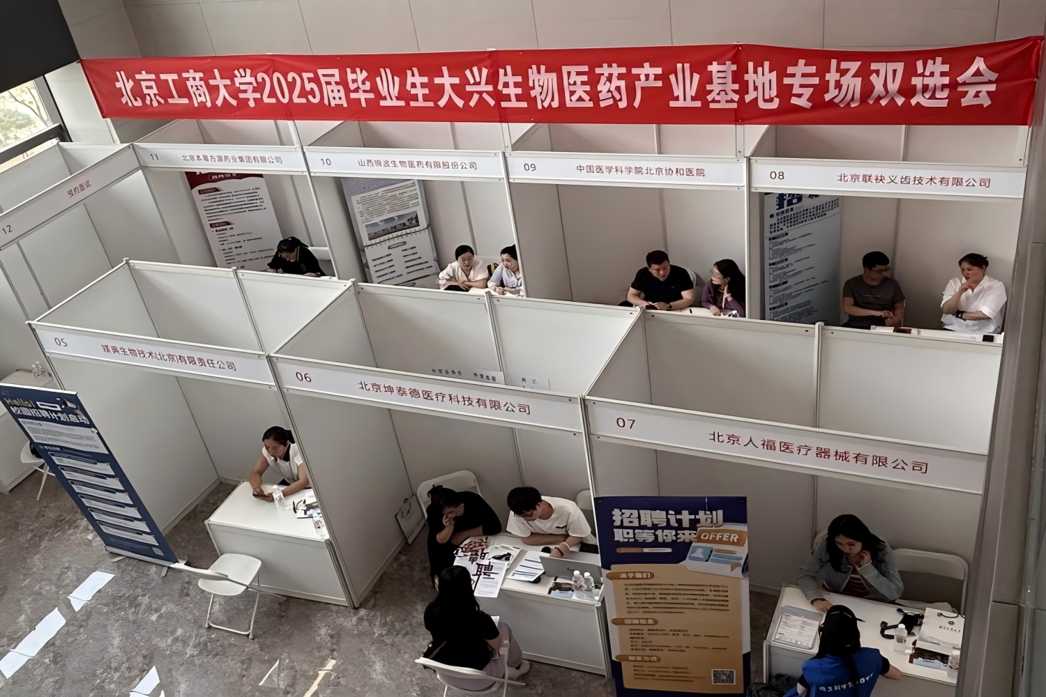 為充分落實(shí)教育部“凝心聚力拓崗位 百日沖刺促就業(yè)”相關(guān)工作要求,打好畢業(yè)生就業(yè)攻堅(jiān)戰(zhàn),5月21日下午,由北京工商大學(xué)和大興生物醫(yī)藥基地聯(lián)合舉辦的2025屆畢業(yè)生“生物醫(yī)藥產(chǎn)業(yè)基地專場”雙選會(huì)在良鄉(xiāng)主校區(qū)輕工食品大樓順利舉辦。
