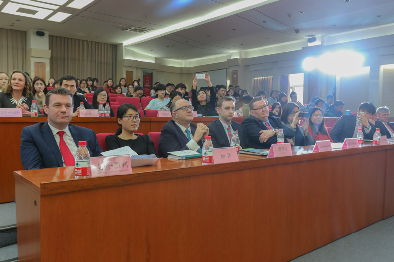 陪同艾倫•凱利部長參加愛爾蘭主題日活動我校的有愛爾蘭駐華大使康寶樂閣下(H.E. Paul Kavanagh)、部長特別顧問吉姆•麥格拉(Jim McGrath)、部長私人助理勞瑞•凱利(Larry Kelly)、使館一等秘書詹妮芙(Jennifer Whelan)、使館工作人員董娜(Donna Dong)、使館商務處教育顧問楊杰(Peter Yang)、愛爾蘭考克大學理學、工學和食品科學學院主任雷諾茲•保羅•羅斯(Paul Ross)、考克大學食品與營養(yǎng)科學學院院長于爾約•魯斯(Yrjo Henrik Roos)、考克大學食品與營養(yǎng)科學學院教授保羅.麥克斯威尼(Prof. Paul McSweeney)、考克大學數(shù)學學院教授黃建、考克大學國際部國際學生聯(lián)絡員艾瑪•康諾利(Emma Connolly)、中國事務代表陳永華、考克大學北京辦公室主任張蓓、愛爾蘭都柏林大學國際部中國事務聯(lián)絡員高蓓、愛爾蘭都柏林城市大學副校長特雷弗•霍姆斯(Trevor Holmes)、愛爾蘭都柏林城市大學中國事務代表王曉俠、愛爾蘭都柏林城市大學博士高玉慧、愛爾蘭國家學院中國事務代表張肖云、愛爾蘭科克理工學院代表龍芬。