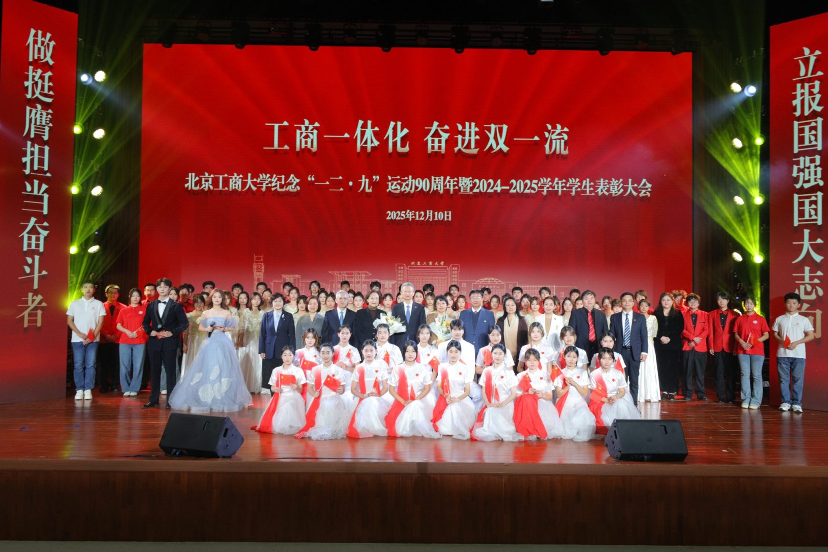 希望每位北工商學子以表彰對象為榜樣,踔厲奮發、勇毅前行,擔當作為、屢創佳績,為學?!半p一流”學科創建與高水平研究型大學建設貢獻青春力量!在推進強國建設、民族復興偉業中,展現青春作為,彰顯青春風采,貢獻青春力量,奮力書寫為中國式現代化挺膺擔當的青春篇章!