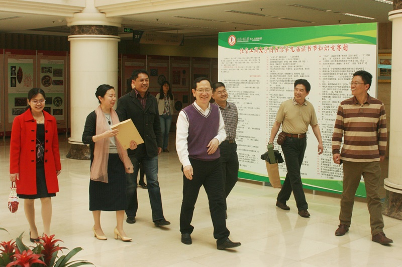 4月23日,學(xué)校黨委書記譚向勇走進(jìn)圖書館,來到同學(xué)們中間,聽取了圖書館關(guān)于大學(xué)生閱讀狀況和讀書節(jié)舉辦內(nèi)容的介紹,認(rèn)真觀看了以弘揚(yáng)中華優(yōu)秀傳統(tǒng)文化和傳統(tǒng)美德為主題的“吉祥中國”圖片展。譚書記談到,中華傳統(tǒng)文化博大精深,具有豐富而深邃的思想內(nèi)涵,通過“吉祥中國”等專題展覽,同學(xué)們可以近距離感受中華傳統(tǒng)文化的獨(dú)特魅力,提高對中華傳統(tǒng)文化的學(xué)習(xí)興趣,并將其傳承和發(fā)揚(yáng)。他指出,讀書節(jié)是學(xué)校校園文化建設(shè)的品牌活動之一,圖書館要積極打造書香校園,進(jìn)一步豐富學(xué)校的人文底蘊(yùn),弘揚(yáng)經(jīng)典,養(yǎng)德勵志,為進(jìn)一步培育大學(xué)生踐行社會主義核心價(jià)值觀發(fā)揮積極作用;要充分發(fā)揮自身優(yōu)勢,整合資源,積極聯(lián)合學(xué)校相關(guān)部門,拓寬服務(wù)渠道、擴(kuò)大服務(wù)范圍,豐富使用功能,多舉辦文化交流活動,加強(qiáng)文化內(nèi)涵建設(shè),通過多種舉措和途徑營造校園文化氛圍,提高大學(xué)生文化底蘊(yùn)和藝術(shù)修養(yǎng)。