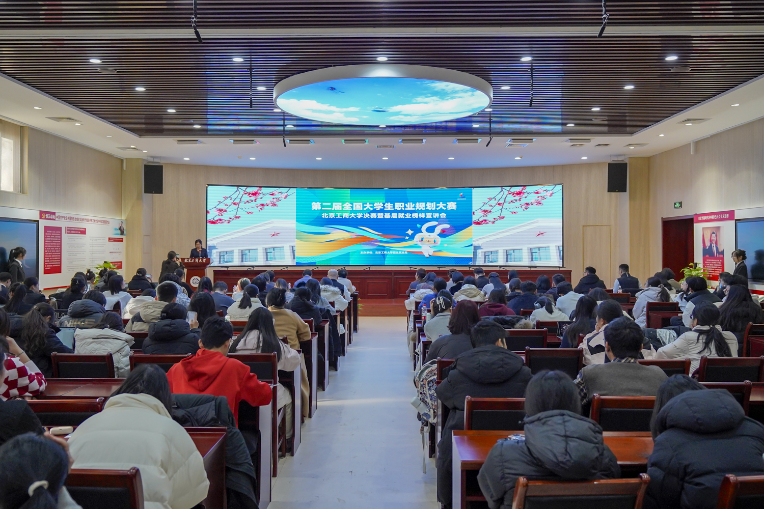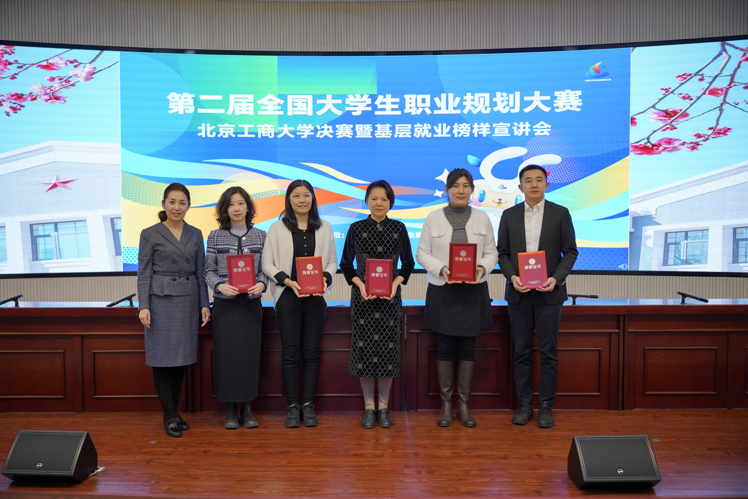 12月25日,第二屆全國大學生職業生涯規劃大賽北京工商大學決賽暨基層就業 榜樣宣講會在良鄉校區舉辦。黨委常委、副校長徐丹丹出席并致辭。招生就業處處長石松,學生處處長鄭光,團委書記單紫薇,教務處副處長、創新創業學院院長蓋曉慶,招生就業處副處長劉晶以及各學院分管就業工作的副書記、師生代表參加了此次活動。教育部高校學生司就業服務處周紫陽、大興區人力資源和社會保障局辦公室主任楊晨應邀出席。大賽特邀中國人民大學、北京外國語大學、北京中醫藥大學就業負責人及企業代表擔任評委。大賽由招生就業處孫碩主持。