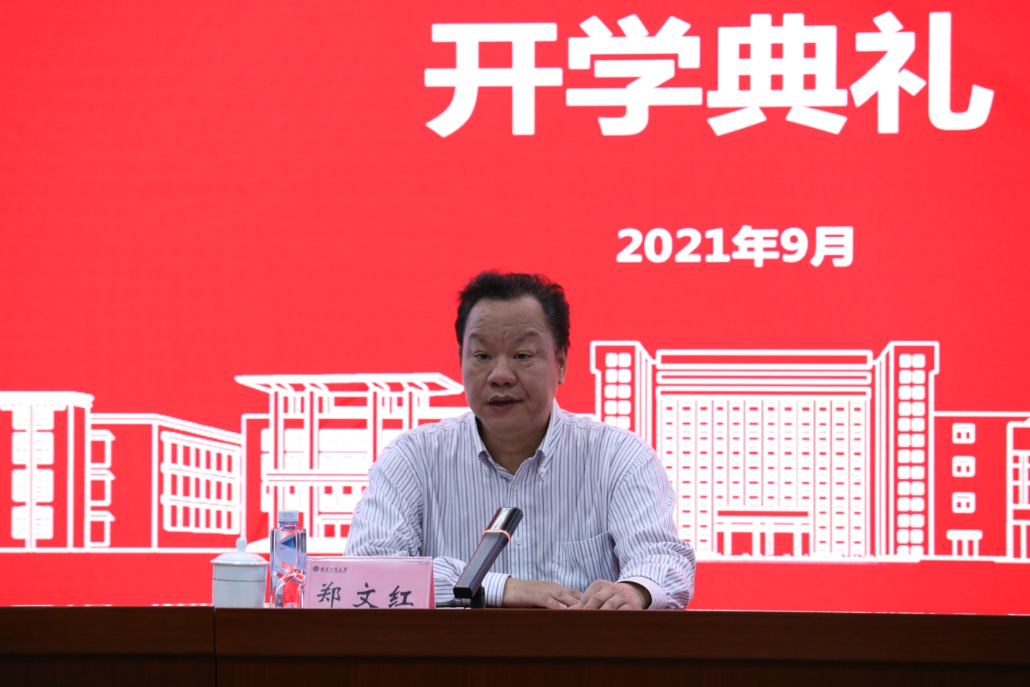 9月16日上午,國際教育學院2021年秋季學期開學典禮在阜成路校區隆重舉行。黨委常委、副校長鄭文紅出席開學典禮。學校數學與統計學院、經濟學院、商學院、電商與物流學院、馬克思主義學院的學院領導、項目教師代表、2021級學院全體新生參加了開學典禮。開學典禮由國際教育學院副院長賀冬萌主持。典禮在全體師生齊唱國歌中拉開帷幕。