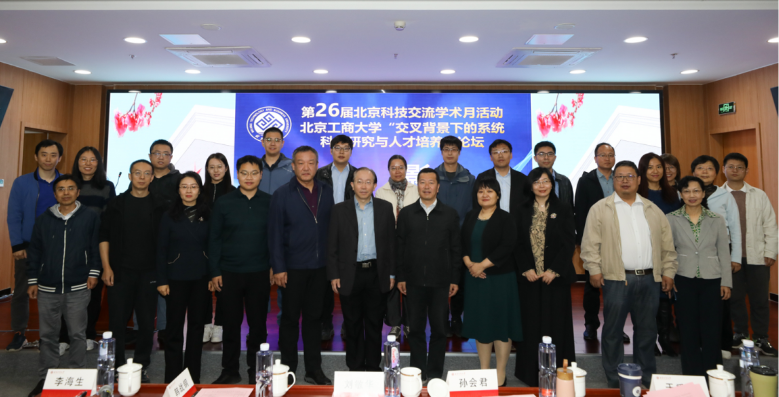 10月20日,第26屆北京科技交流學術月活動——北京工商大學“交叉背景下的系統科學研究與人才培養”論壇舉行,活動由北京工商大學科學技術協會、數據科學與人工智能學部、系統科學研究院聯合主辦。學校黨委常委、副校長劉敏華,國務院系統科學學科評議組成員、北京師范大學韓戰鋼教授,教育部長江學者、北京交通大學孫會君教授,海外高層次人才引進計劃青年項目獲得者、北京師范大學樊京芳教授等應邀出席論壇。我校數據科學與人工智能學部主任于重重教授、計算機與人工智能學院執行院長李海生教授、科學研究院自然科學處副處長(主持工作)趙峙堯副教授、系統科學學科及相關學科的師生代表共100余人參加了論壇。李海生和吳靜珠分別主持了開幕式環節和人才培養環節。