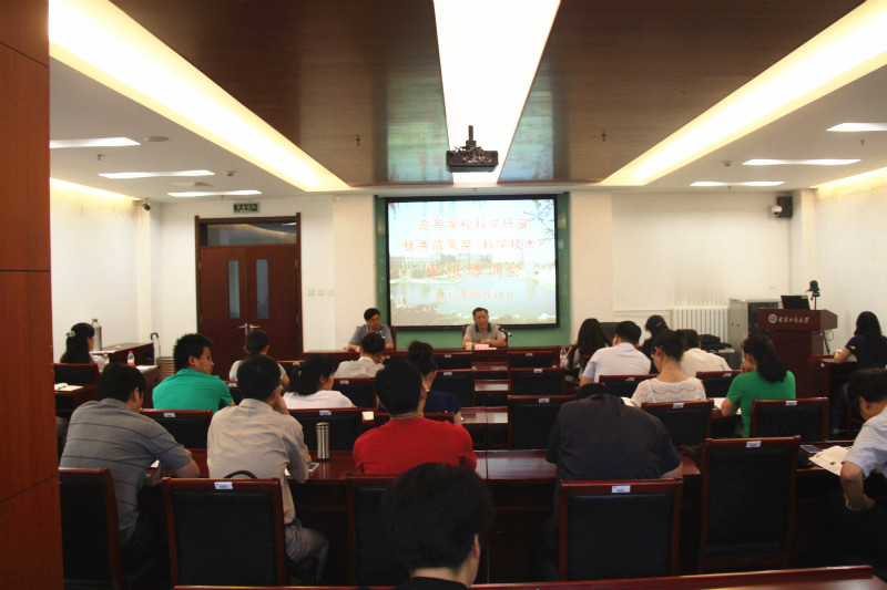 為全面提高學(xué)校申報(bào)教育部高等學(xué)??茖W(xué)研究優(yōu)秀成果獎(jiǎng)(科學(xué)技術(shù))的數(shù)量和質(zhì)量,6月9日,學(xué)校在阜成路校區(qū)召開2015年度高等學(xué)校科學(xué)研究優(yōu)秀成果獎(jiǎng)(科學(xué)技術(shù))申報(bào)培訓(xùn)會(huì)。副校長謝志華出席會(huì)議并講話??萍继幐碧庨L康智勇,2013年度高等學(xué)??茖W(xué)研究優(yōu)秀成果獎(jiǎng)(科學(xué)技術(shù))二等獎(jiǎng)獲得者、食品學(xué)院田紅玉教授及相關(guān)學(xué)院50余名教師參加培訓(xùn)會(huì)。會(huì)議由科技處處長楊有紅主持。