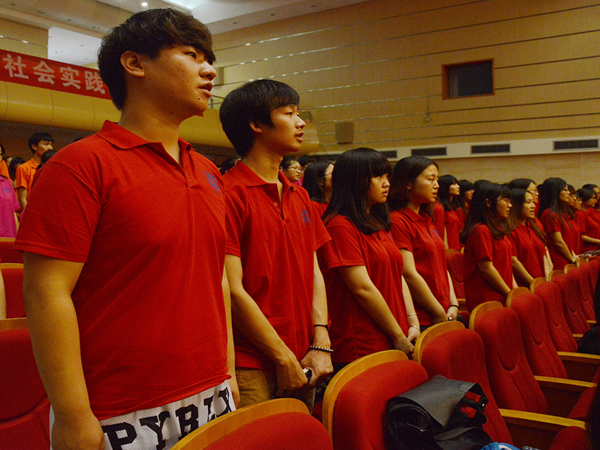理學(xué)院院于11點(diǎn)到達(dá)房山區(qū)坨里中學(xué),并于該校報(bào)告廳隆重召開(kāi)暑期實(shí)踐開(kāi)營(yíng)儀式,出席本次儀式的有坨里中學(xué)領(lǐng)導(dǎo)、理學(xué)院黨總支副書(shū)記王嘉彥老師以及帶隊(duì)輔導(dǎo)員老師李鑫、李娜。會(huì)上, 坨里中學(xué)相關(guān)老師向大家介紹了坨里中學(xué)的基本情況,并對(duì)實(shí)踐分團(tuán)的日常生活和教學(xué)計(jì)劃做出了指示。坨里中學(xué)校長(zhǎng)談到,此次活動(dòng)是一次大學(xué)生從學(xué)校到社會(huì),由理論知識(shí)到實(shí)踐知識(shí)的難得的拓展活動(dòng),可以挖掘?qū)W生的能力,鍛煉擔(dān)當(dāng)精神,期望這是一次友誼長(zhǎng)存的開(kāi)始。