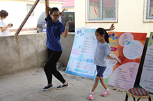 當(dāng)趣味英語(yǔ)走進(jìn)社區(qū),通過(guò)與學(xué)齡前兒童家長(zhǎng)面對(duì)面交流,大家不僅了解到當(dāng)?shù)貎和瘜W(xué)習(xí)英語(yǔ)的具體水平和需求,同時(shí)大家了解到要因材施教,在與兒童游戲中讓他們?nèi)谌胝Z(yǔ)境,增強(qiáng)語(yǔ)感、學(xué)習(xí)英語(yǔ)。家長(zhǎng)對(duì)這種接地氣、寓教于樂(lè)的教學(xué)方式表示認(rèn)可和支持。