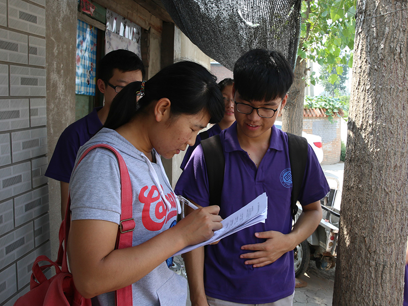 短暫的午休過后,實踐團調研組成員頂著烈日深入基層,開展了有關于“農村地區(qū)未成年子女監(jiān)護問題”的調查研究,并且對于新修訂的將于2015年10月1日實施的《食品安全法》展開宣傳。實踐團的成員們仍然親切熱情地邀請農村居民們加入調研。在成員們的互相鼓勵下,大家保持著更加高漲的熱情堅持不懈地與農村居民們展開交流。農村居民們也耐心地在實踐團成員的協(xié)助下填寫調查問卷,表達了對于未成年子女教育方式以及長輩對未成年人影響的獨特見解,還講述了很多自己與子女甚至孫子女的日常生活,并且提出了一些有關食品安全保障的疑問,例如普遍受到重視的嬰幼兒奶粉的質量問題,還有瑕疵產品與缺陷產品的損害賠償問題等。在農村居民們的配合下,僅用兩個小時,我們收回了78份問卷,也收獲了與別人溝通交流的經(jīng)驗。