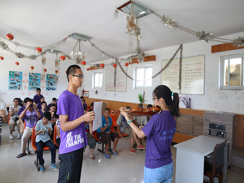 上午八點半,小老師們開始了支教的第一堂課——新生見面會。優(yōu)美的歌舞、慷慨激昂的詩朗誦、詼諧的自我介紹,消除了小老師們和學生們初次見面的陌生感。在文學、音樂、體育等課堂上,計信實踐團的小老師們寓教于樂,通過問答互動、游戲互動讓孩子們領略到知識的的深厚意蘊。同時,活動組和調研組前往南洛村溫馨家園進行志愿服務,溫馨家園是當?shù)刂橇ι嫌姓系K的殘疾人日?;顒拥牡胤?。同學們陪這些特殊的朋友一起制作手工藝品,在特殊朋友的講解示范下用心學習,共同配合完成了幾個可愛的手工小物件,隨后為他們打掃了房間衛(wèi)生。同學們還為他們精心準備了文藝節(jié)目,幽默風趣的小品、優(yōu)美悅耳的小提琴獨奏等精彩上演,大家看得津津有味,全場充滿了歡笑聲。